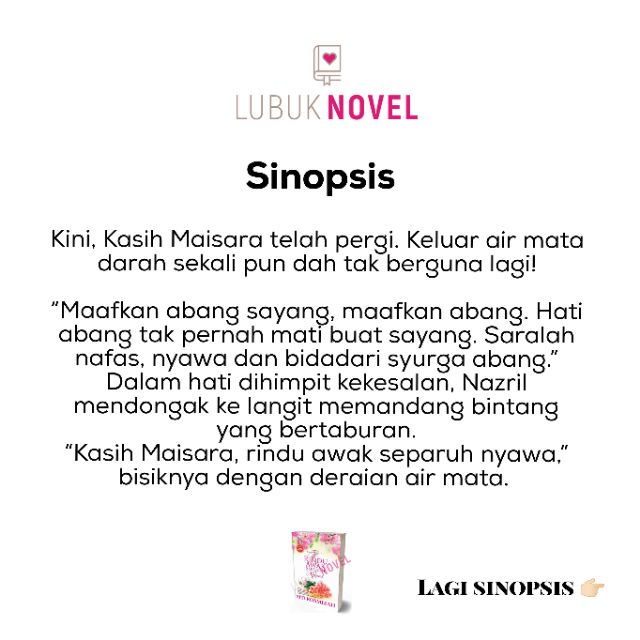 Namun rasa itu sedikit pun tidak pernah diakui oleh Hatrisya. Kasih Maisara rindu awak separuh nyawa bisiknya dengan deraian air mata. Maafkan abang sayang maafkan abang.
